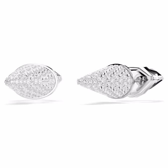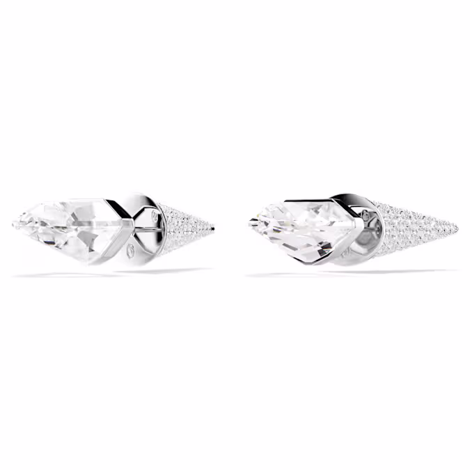 Творчество, форма и светоотражающие грани объединяются, чтобы придать этим покрытым родием серьгам бунтарский шик. Каждая привлекающая внимание серьга-гвоздик имеет две одинаково пленительные стороны: граненый полуограненный кристалл спереди и ослепительную застежку-шип, украшенную паве из круглых кристаллов сзади. Изделие в стиле панк, которое добавит остроты вашему повседневному стилю.