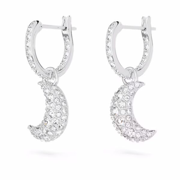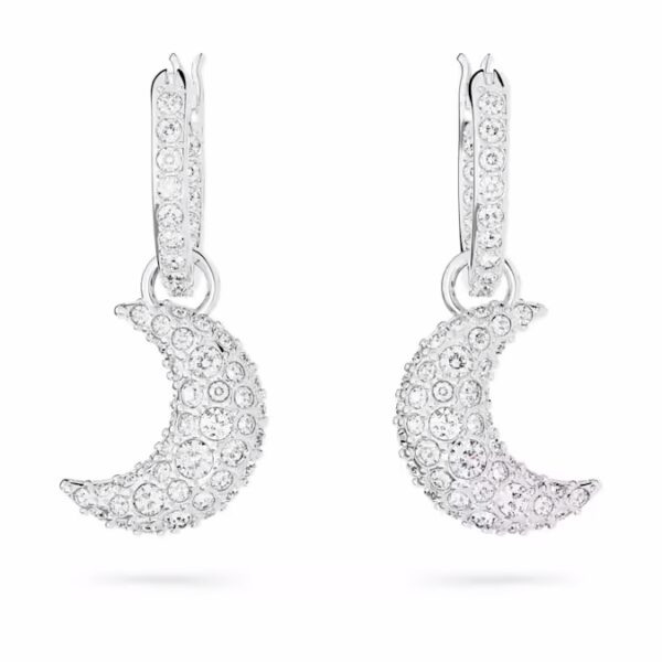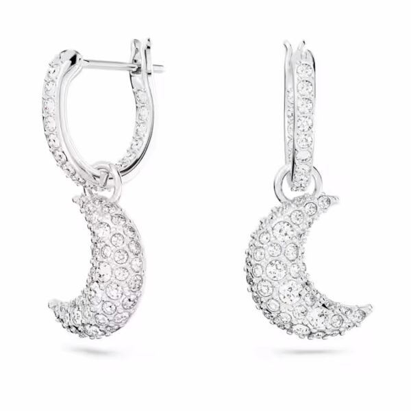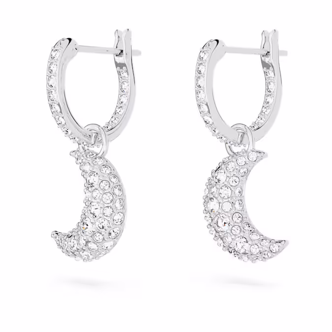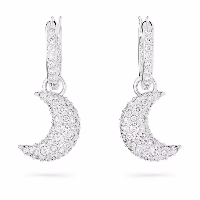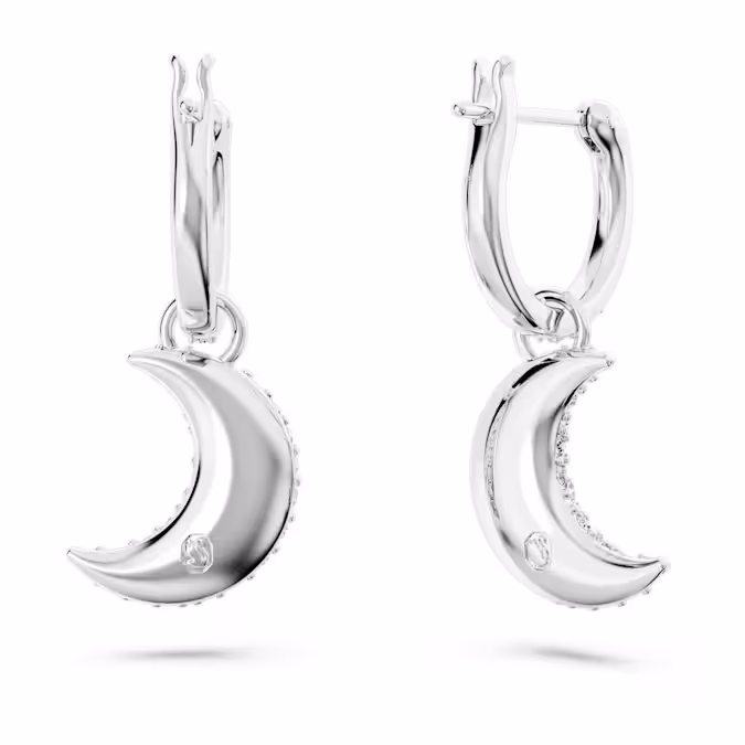 Стиль поднимается на новый уровень с этими мини-серьгами-кольцами из серии Sublima. Покрытый родием дизайн представляет собой элегантную пару полумесяцев, каждый из которых украшен кристаллами пяти разных размеров для изысканного эффекта паве. Простой способ добавить немного мистической энергии в любой образ.