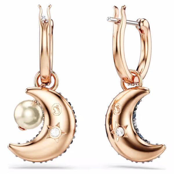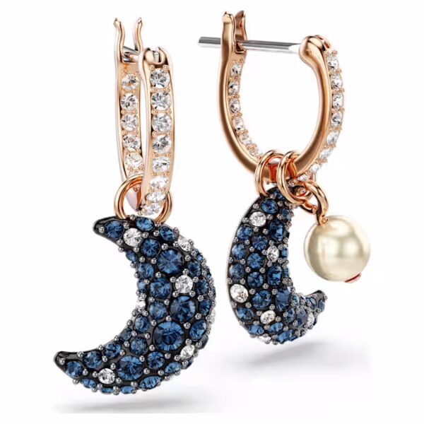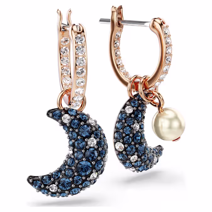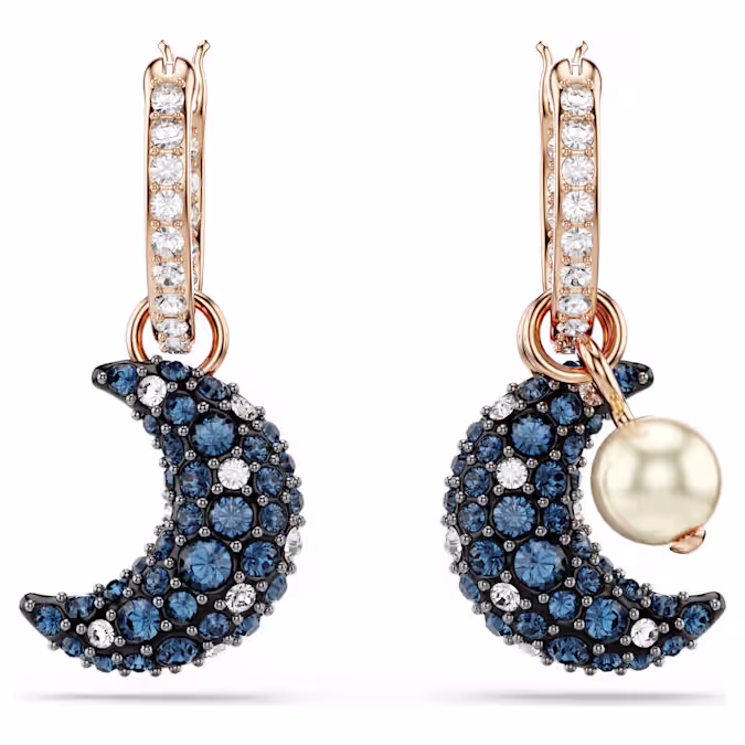 Эти сияющие серьги Sublima — шикарная дань отражениям и теням луны. Дизайн с покрытием из розового золота представляет собой элегантную пару полумесяцев, каждый из которых украшен паве из кристаллов темных тонов, свисающих с ослепительных мини-колец. Одна серьга содержит съемную жемчужину. Идеальный выбор, в какой бы фазе стиля вы ни находились.