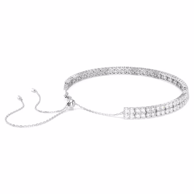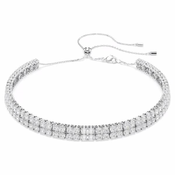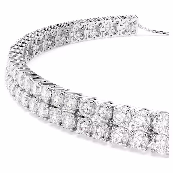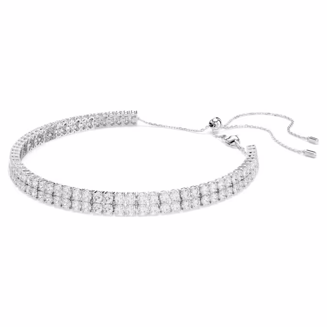 Демонстрируя мастерство Swarovski в освещении, это изысканное колье является настоящим заявлением элегантности. Покрытый родием дизайн отличается двумя рядами цирконий Swarovski в зубчатой оправе круглой огранки. Скользящая застежка-шар позволяет легко отрегулировать украшение по размеру. Ощутите роскошь во всем, надев это колье вместе с подходящим браслетом Matrix Tennis.