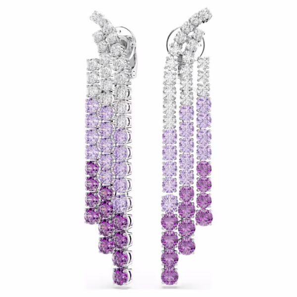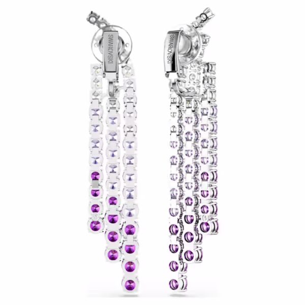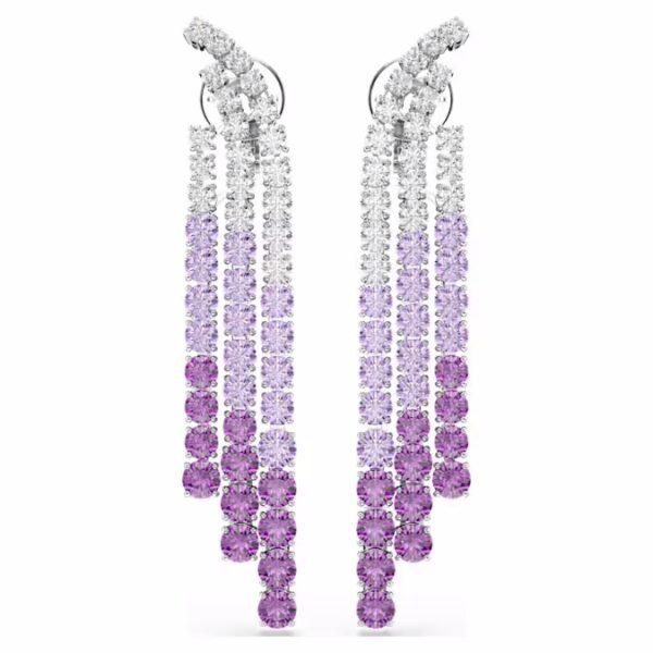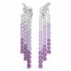 Отпразднуйте свою индивидуальность с этими красочными и бесстрашными серьгами-клипсами. Каждое радостное изделие покрыто родием и имеет три длинные нити круглой огранки Swarovski Zirconia в градиенте фиолетовых и прозрачных тонов. Демонстрация мастерства и воображения, рожденная для всеобщего внимания.