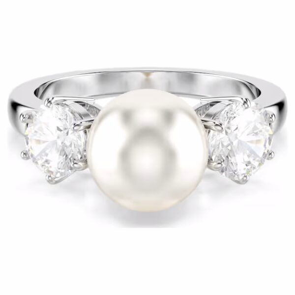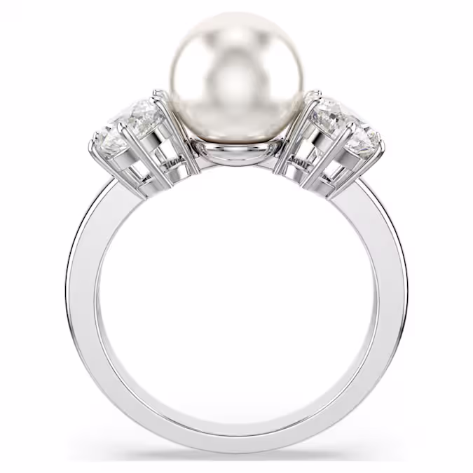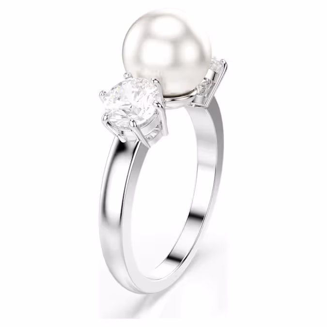 Это изысканное коктейльное кольцо Matrix представляет собой свежий взгляд на классический силуэт. Покрытый родием дизайн отличается белой жемчужиной Swarovski Crystal Pearl в центре, дополненной по обе стороны цирконами Swarovski Zirconia в зубчатой оправе. Роскошное изделие, предлагающее мгновенную элегантность.