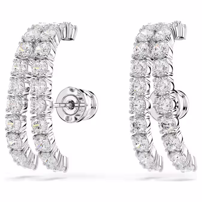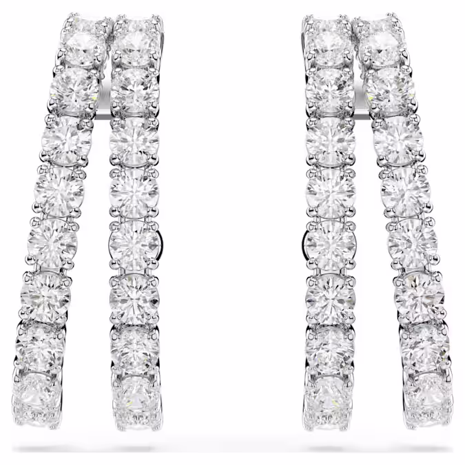 Экстремальная элегантность встречается с сияющим светом в этой потрясающей паре сережек Matrix. Каждое изделие с родиевым покрытием имеет две полосы, украшенные круглыми цирконами Swarovski, представленными в прозрачном оттенке. Очаровательный выбор, чтобы выразить утонченную сторону вашего стиля.