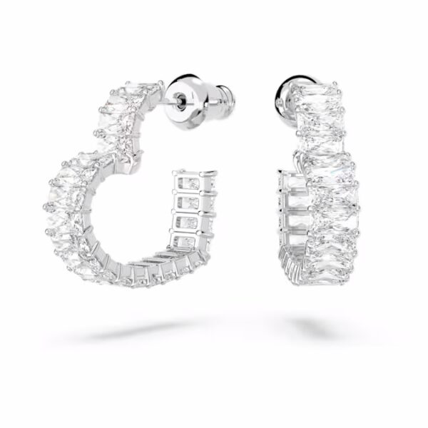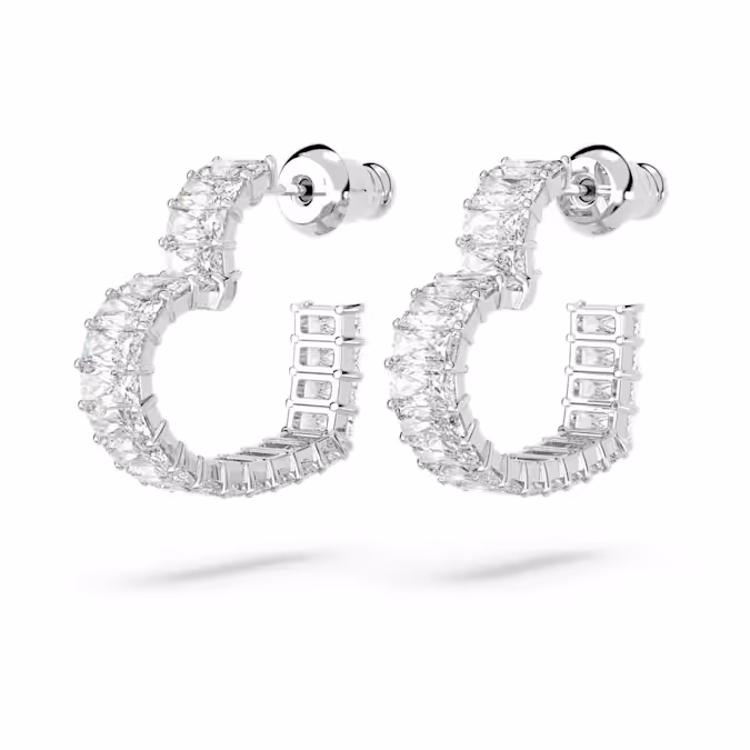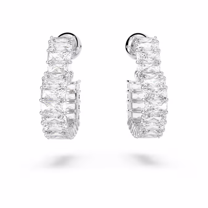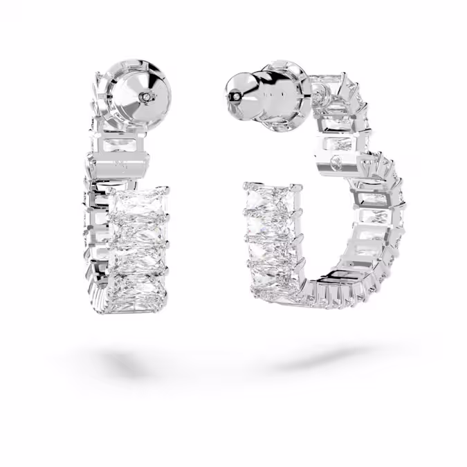 Почувствуйте изысканную элегантность с этими маленькими серьгами в форме сердца из семейства Matrix. Страстный дизайн сочетает в себе родиевое покрытие с полным паве из прозрачных кристаллов багетной огранки и обручальный вид, который мгновенно привлечет внимание. Идеальный подарок для себя или любимого человека, эти серьги можно носить отдельно или в сочетании с ожерельем из того же семейства.