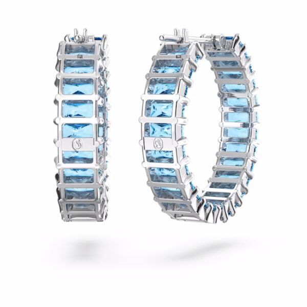 Окружите свой стиль кристаллами с помощью этих поразительных серег Matrix, которые придают дизайну кольца ослепительный стандарт детализации. Каждое изделие с родиевым покрытием имеет круг из багетных камней принцессной огранки в аквамариновом тоне, скрепленных вместе изысканной зубчатой ​​закрепкой. Этот дизайн — как раз то, что нужно для завораживающего. Носите их со всем.