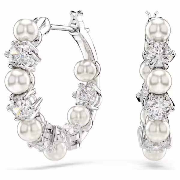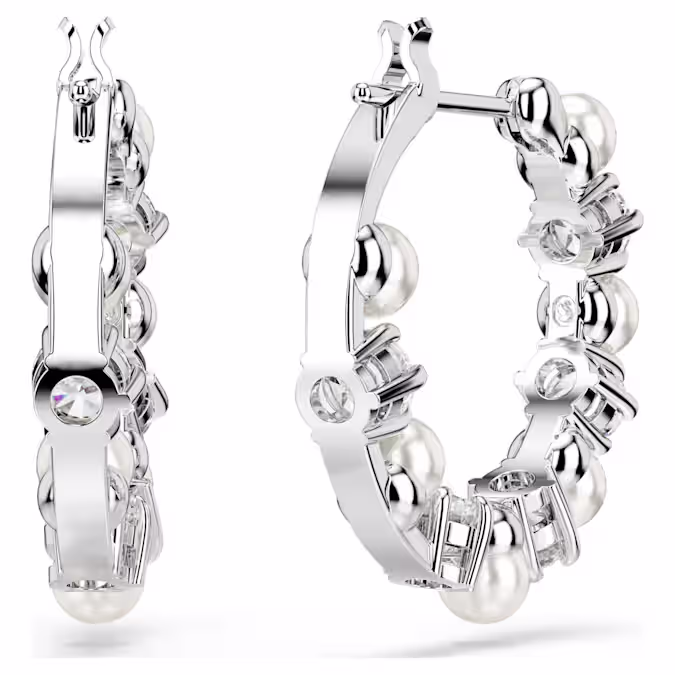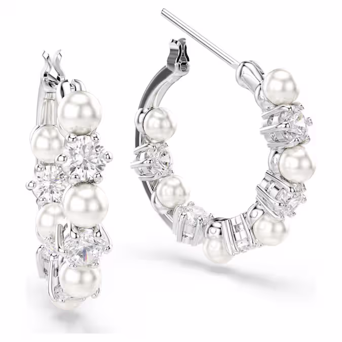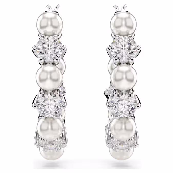 Эти проколотые серьги Matrix — уникальная и современная интерпретация классического стиля колец. Каждое изделие покрыто родием и украшено чередующимися цирконами Swarovski и кристальными жемчужинами Swarovski. Это заявление об изысканности, которое превратит любой наряд из обычного в выдающийся.