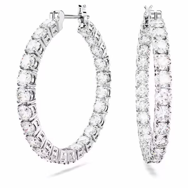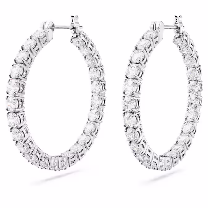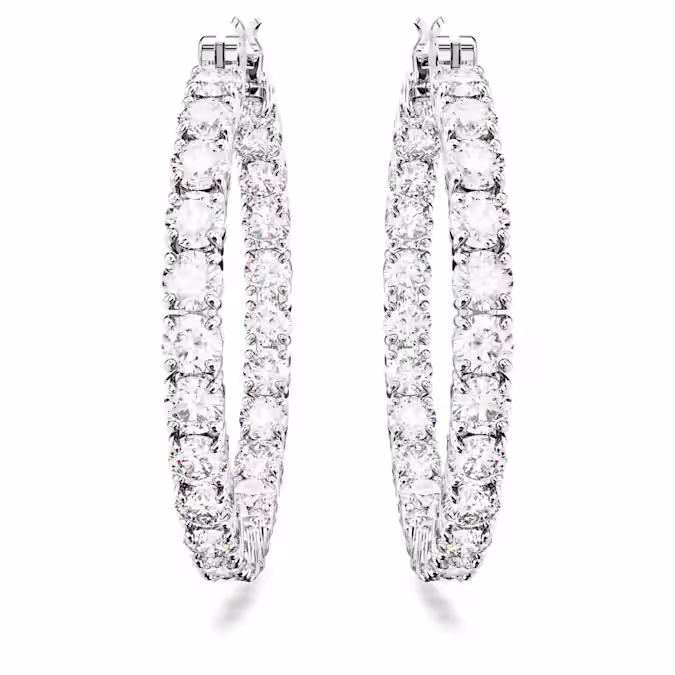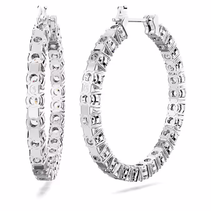 Эти идеально сформированные серьги-кольца Matrix определяются вневременным видом прозрачных круглых камней и металла с родиевым покрытием. Это сияющее сочетание, которое необходимо для любой шкатулки с драгоценностями. Достаньте эти кольца, чтобы придать идеальные круги сияния любому наряду.