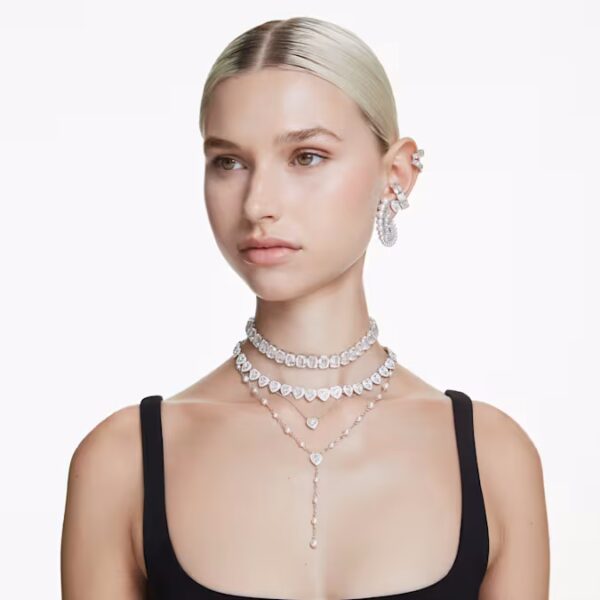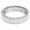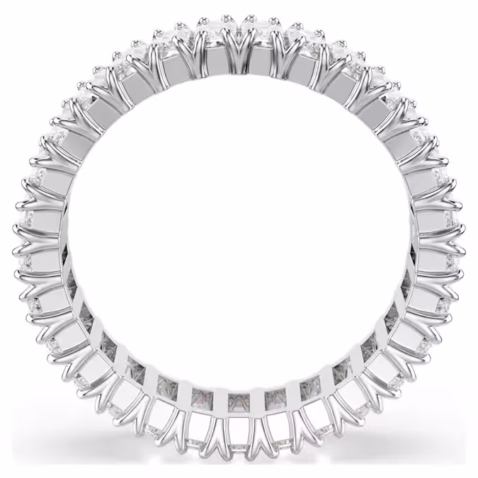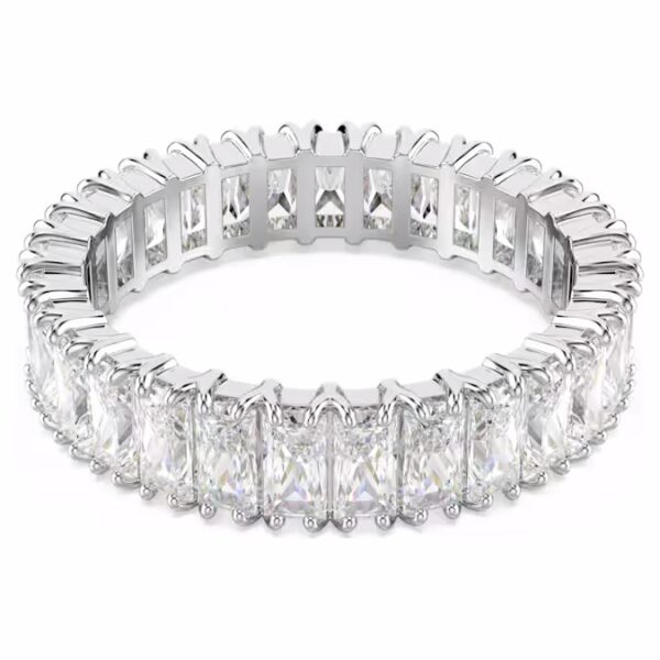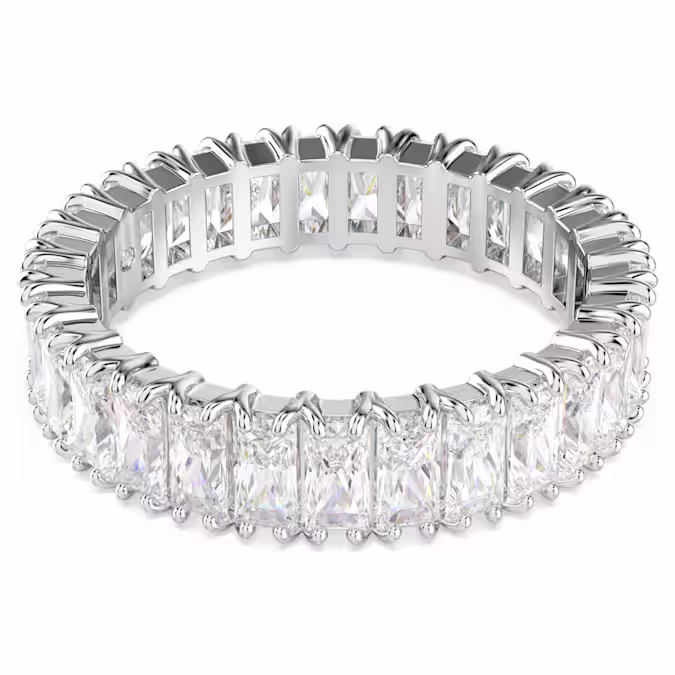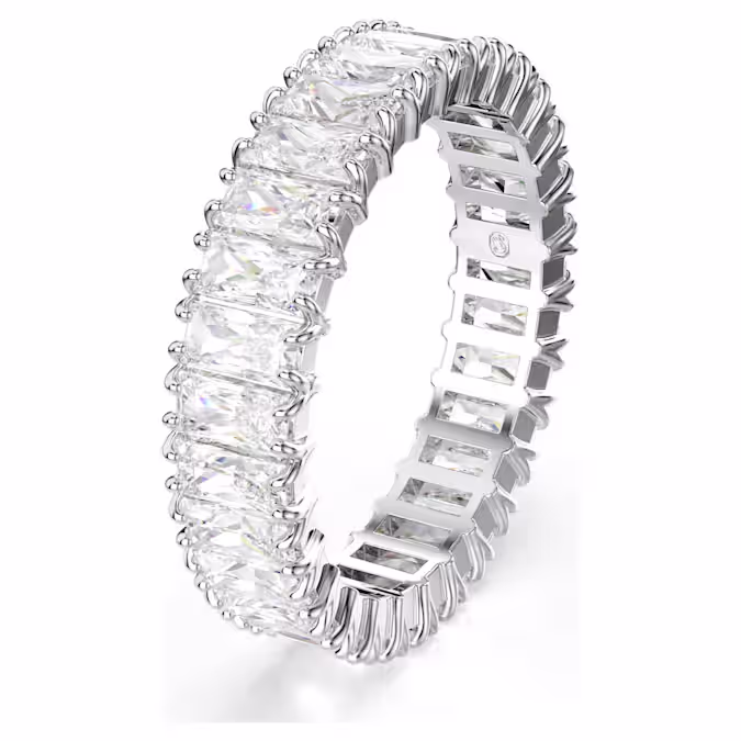 Ни одна коллекция украшений не обходится без сияющего кольца-обруча. Этот дизайн с отделкой серебристого тона отличается полным обрамлением из багетных цирконий Swarovski, каждый из которых помещен в изысканную зубчатую оправу. Сенсационное украшение, которое можно носить отдельно или в сочетании с такими же ослепительными кольцами из семейства Matrix.