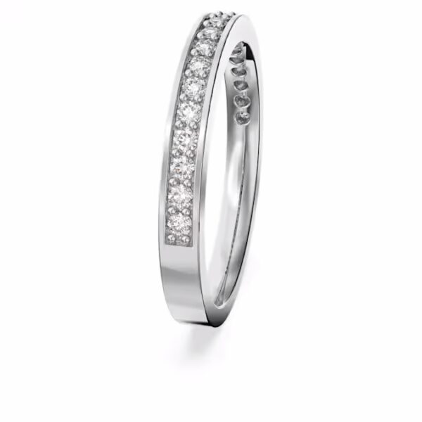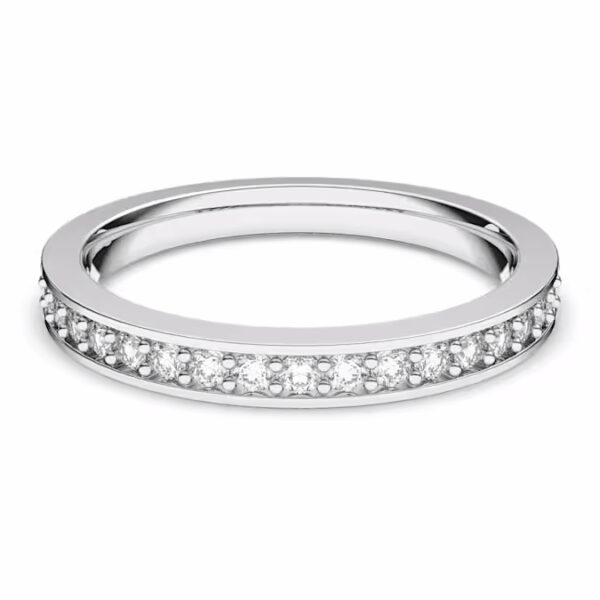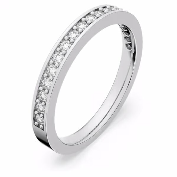 Незаменимая вещь для любой шкатулки с драгоценностями. Это нежное кольцо с родиевым покрытием, с тонким силуэтом и полукругом из камней точной огранки, изысканно и удобно в носке. Сочетайте его с другими украшениями в серебристых тонах или смешивайте металлы для дополнительного интереса.