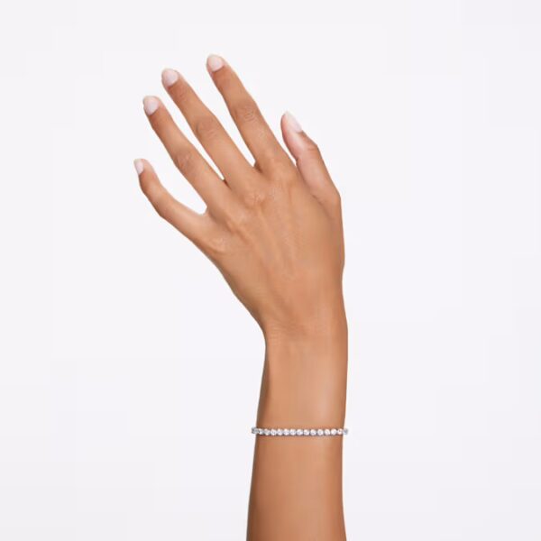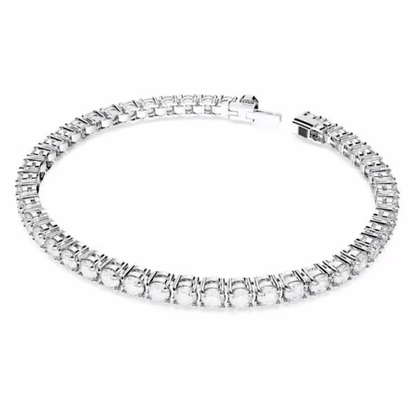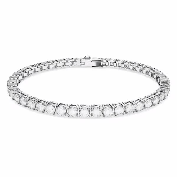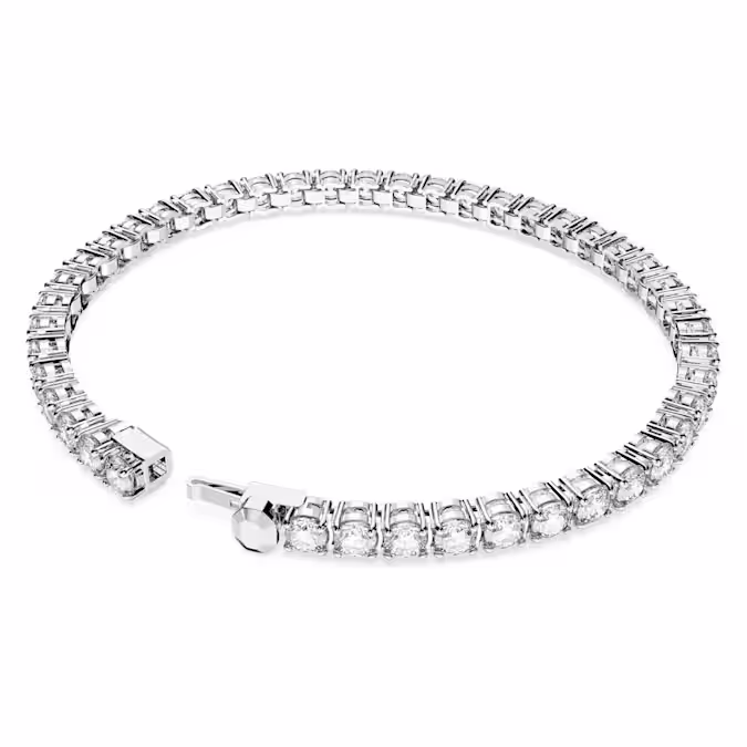 Этот мерцающий браслет Matrix Tennis представляет собой классическое сочетание ослепительно прозрачных камней и прохладного родиевого покрытия, долговечный вид, который никогда не выйдет из моды. Каждый из кристаллов чудесно отражает свет, гарантируя, что ваше запястье всегда будет притягивать взгляды. Наслаждайтесь этим вневременным украшением для себя или рассмотрите его как прекрасную идею для подарка.