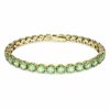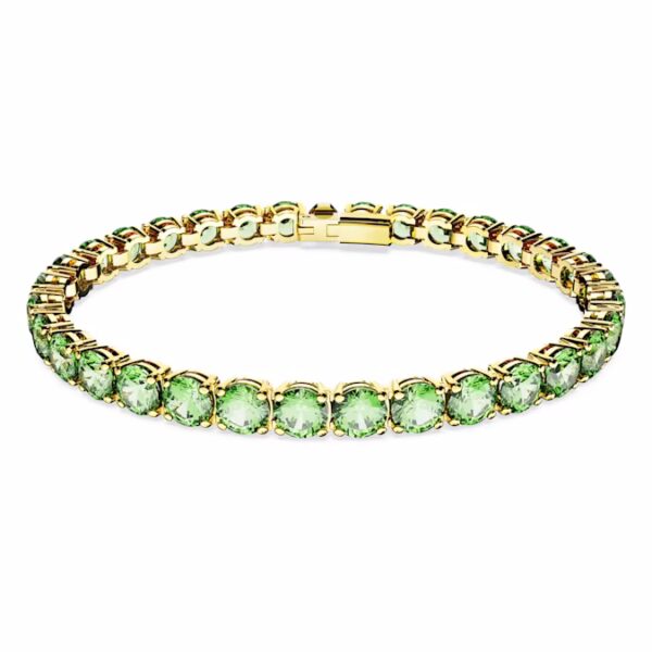 Охватывая современную текучесть семейства Matrix Tennis, этот сверкающий браслет окружает ваше запястье ярким светоотражающим цветом. Круглые зеленые камни установлены в золотом покрытии в гладкой однородности, давая вам украшение, которое достаточно яркое, чтобы носить его отдельно, и достаточно простое, чтобы сочетать его с другими украшениями.