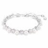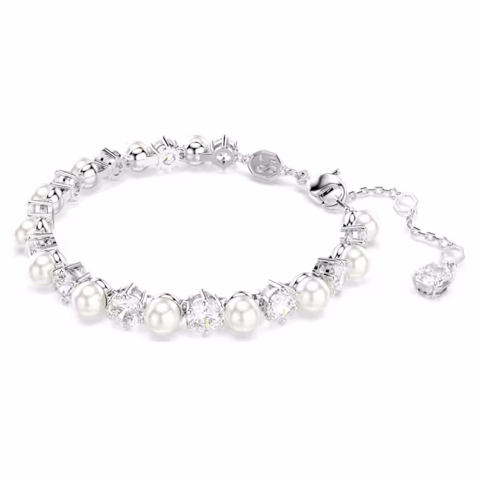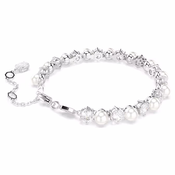 Это потрясающее украшение преображает классический теннисный браслет Swarovski, выводя его на новый уровень утонченности. Покрытый родием дизайн выполнен с полным окружением чередующихся Swarovski Zirconia и Swarovski Crystal Pearls, что придает современный вид чистой изысканности. Инновационная застежка еще больше повышает точность, обеспечивая надежную фиксацию на запястье. Сочетайте этот браслет с подходящими серьгами или ожерельем для максимального блеска.
