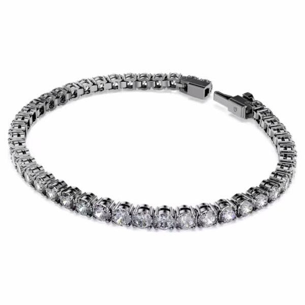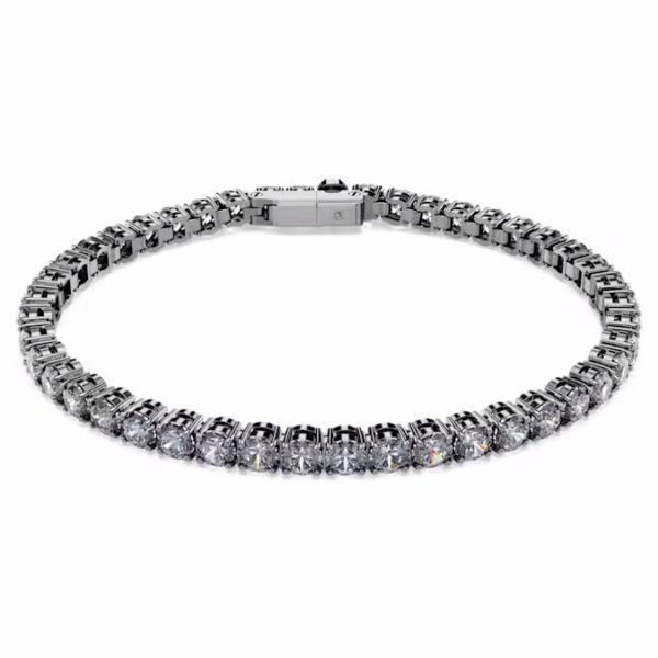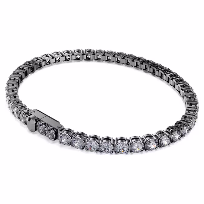 Откройте для себя мощную эволюцию классического теннисного браслета. Этот дизайн с рутениевым покрытием имеет полное окружение из серебристо-серых цирконий Swarovski и простую в использовании застежку Matrix Tennis. Добавляя интриги к любому образу, этот отличительный элемент является идеальным способом подчеркнуть ваш стиль.