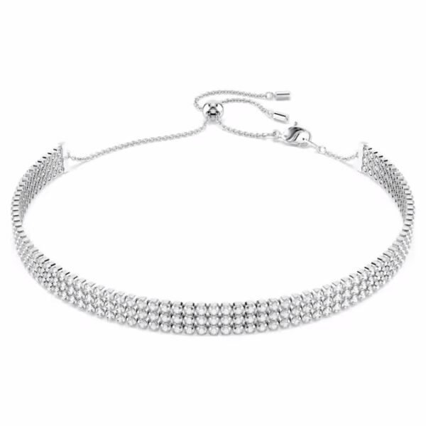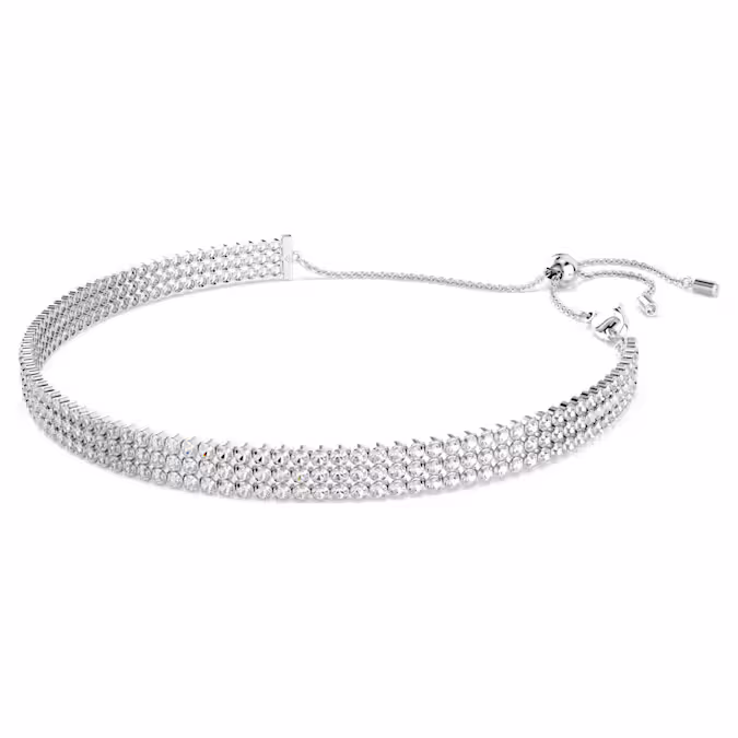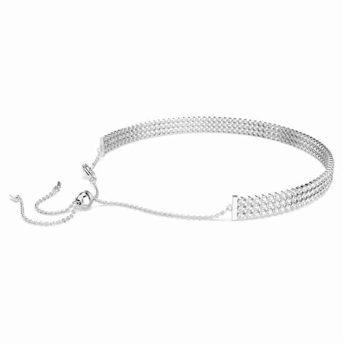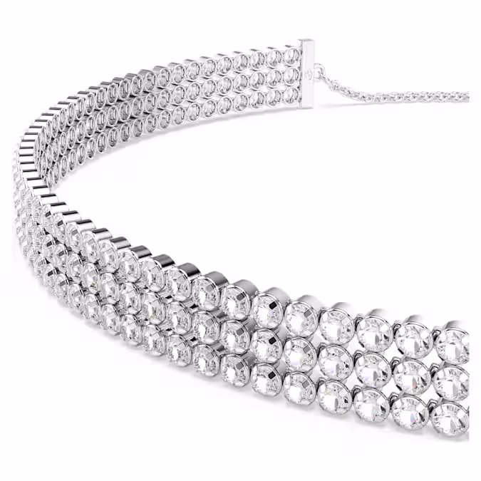 Демонстрируя мастерство Swarovski в освещении, это изысканное колье является настоящим заявлением элегантности. Покрытый родием дизайн имеет три ряда цепочек-чашек, украшенных прозрачными цирконами Swarovski в круглых огранках. Скользящая застежка-шар позволяет легко отрегулировать украшение по размеру. Ощутите роскошь во всем, надев это колье вместе с подходящим браслетом Matrix.