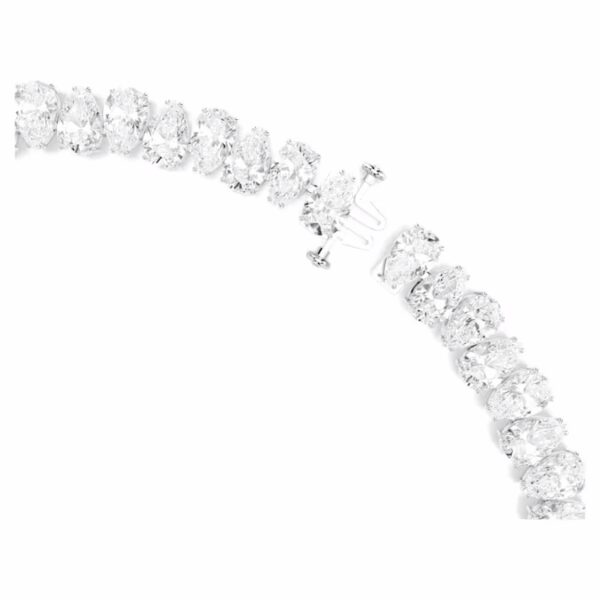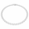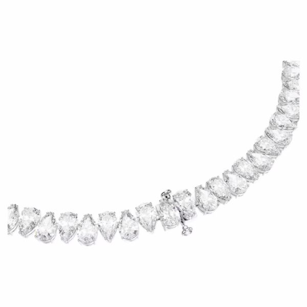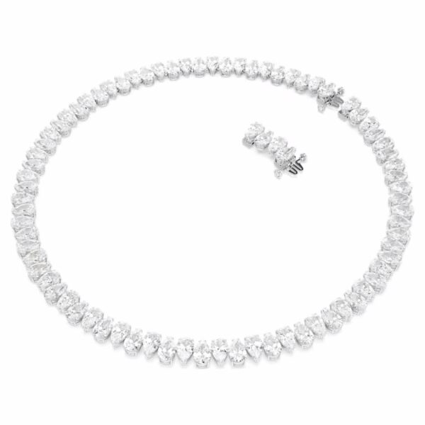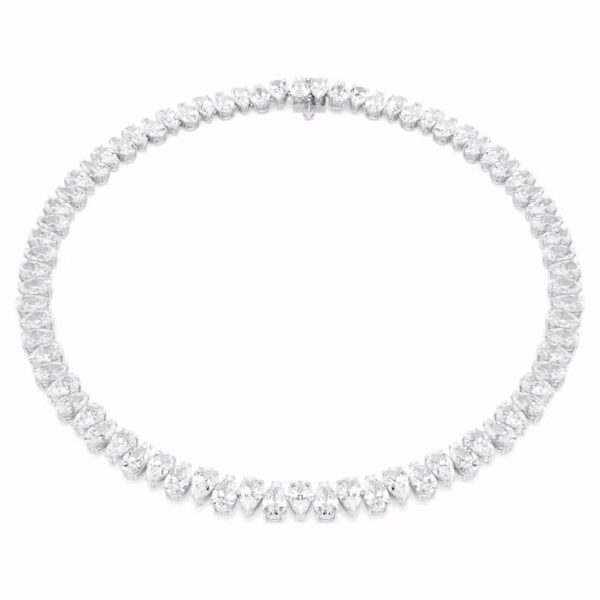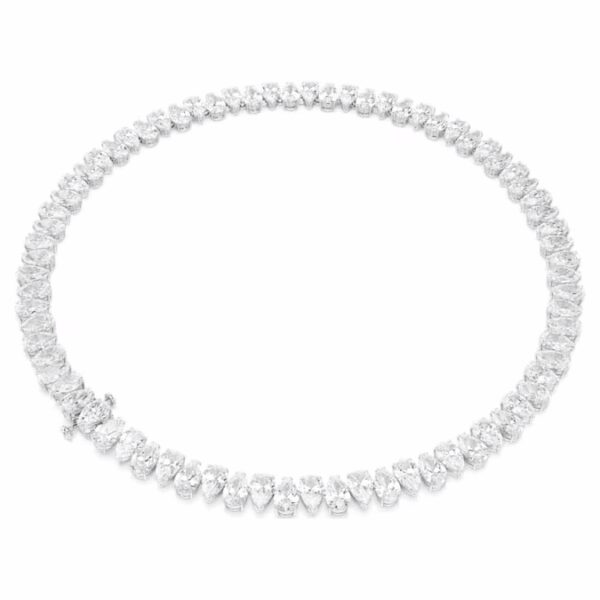 Это ожерелье Matrix Tennis с его характерной огранкой выводит теннисный стиль на новый захватывающий уровень. Изделие выполнено из покрытого родием металла и украшено сплошным рядом бесцветных цирконий Swarovski грушевидной формы. Результат: почти бесконечная река ограненных камней, которая мгновенно украсит ваш образ динамичным и изысканным блеском.