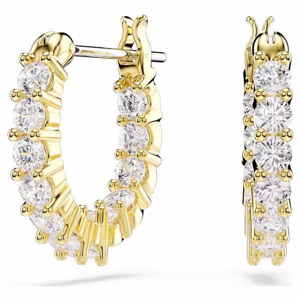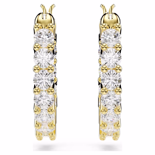 Эти миниатюрные серьги-кольца от Swarovski – сияющее и вневременное украшение. Обе серьги покрыты золотистым покрытием и украшены многочисленными циркониями Swarovski, которые придают им привлекательный вид и нежное мерцание. Идеально сочетаются с подходящими колье и браслетами, эти серьги станут прекрасным подарком на каждый день.