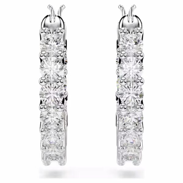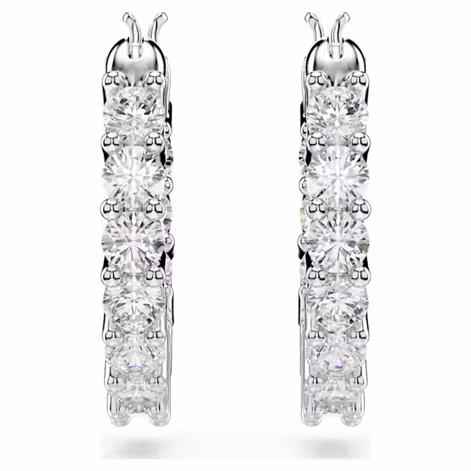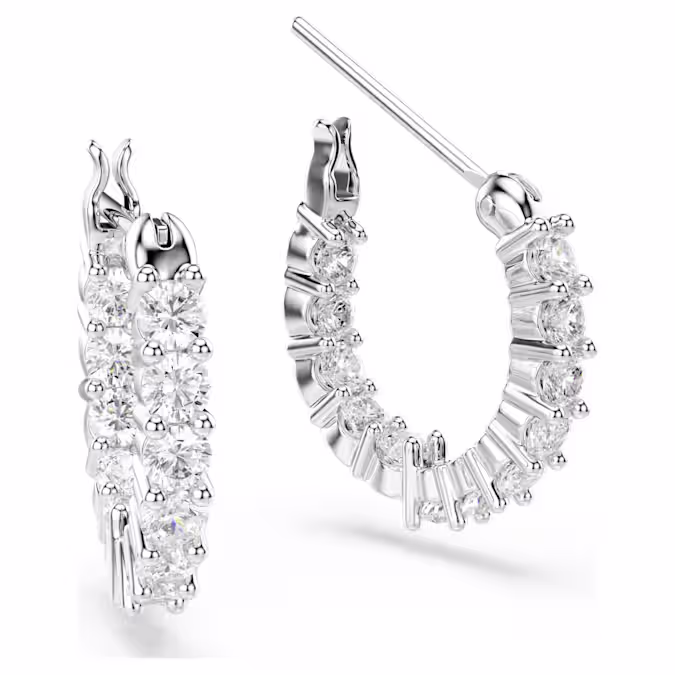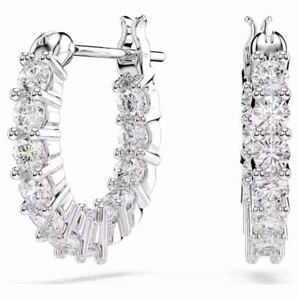 Эта пара сережек Swarovski — восхитительное, неподвластное времени украшение. Обе серьги-кольца украшены многочисленными сверкающими белыми камнями, которые подчеркивают их привлекательный вид тонким мерцанием. Эти серьги лучше всего носить с подходящими ожерельями и браслетами, они станут восхитительным подарком для повседневных случаев.