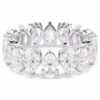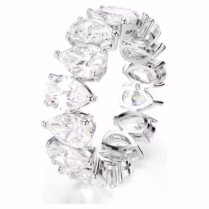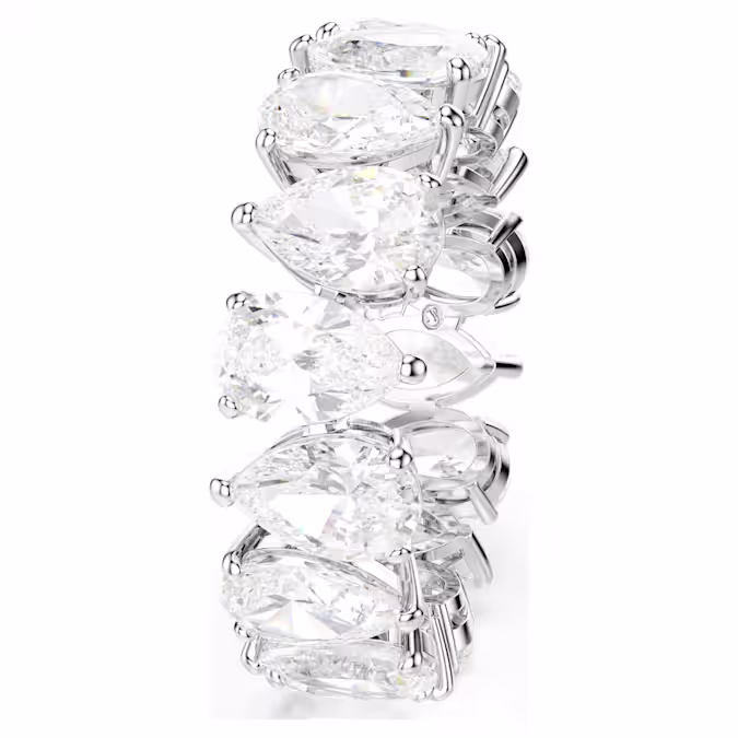 Это кольцо от Swarovski демонстрирует сверкающую красоту мерцающих, ограненных камней. Белые, каплевидные элементы, расположенные в один ряд, прекрасно отражают и преломляют входящий свет. Его чистые, элегантные формы делают это кольцо идеальным для комбинирования с другими украшениями или для наложения с подходящими кольцами для создания модного образа. Отличный выбор для дополнения наряда для особых случаев и по-настоящему вдохновляющая идея для подарка.