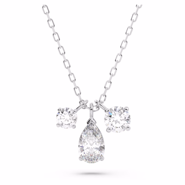 Этот кулон от Swarovski демонстрирует высочайшее мастерство исполнения. Он украшен тремя сверкающими белыми камнями: центральный, каплевидный элемент прекрасно дополняют два меньших круглых камня. Изящные грани создают утонченный, но простой вид, идеально подходящий для украшения повседневных нарядов. Кулон дополнен цепочкой в ​​тон и отлично сочетается с похожими ювелирными изделиями.