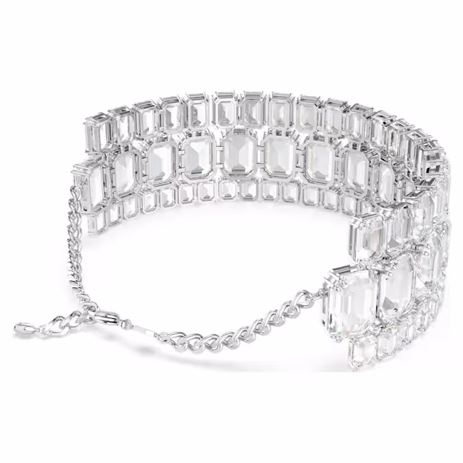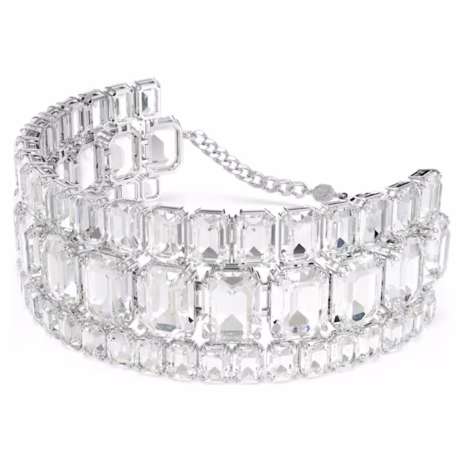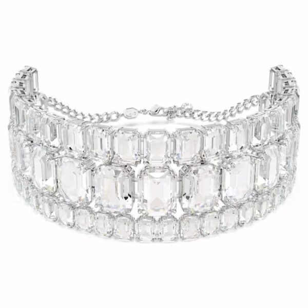 Усильте свой повседневный стиль с этим потрясающим чокером Millenia. Блестящий, выразительный предмет, дизайн выполнен с родиевым покрытием и включает три сияющих ряда прозрачных восьмиугольных кристаллов разных размеров. Этот ошеломляющий дизайн идеально подходит для повседневной моды и является ярким примером мастерства Swarovski в использовании света.