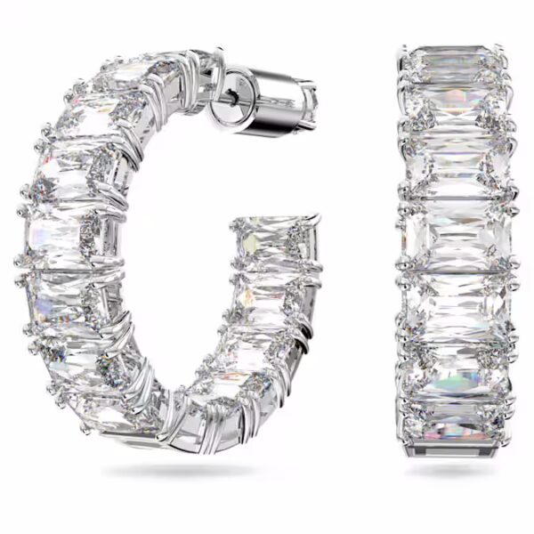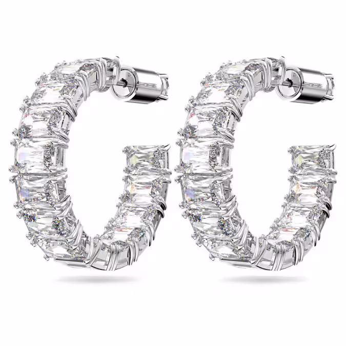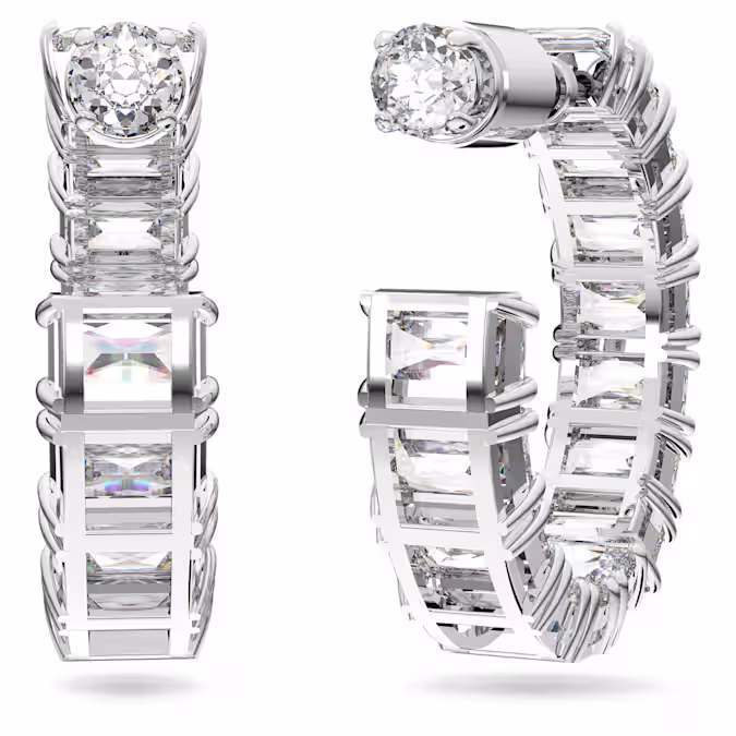 Классический дизайн кольца с ослепительным поворотом, эта элегантная пара имеет равномерный ряд камней восьмиугольной огранки, заключенных в тонкую оправу с родиевым покрытием. Добавляя всего лишь капельку повседневной магии к любому образу — днём или ночью. Эти серьги являются частью семейства Matrix, разработанного креативным директором Джованной Энгельберт для Collection III.
