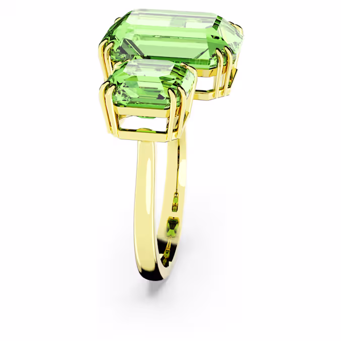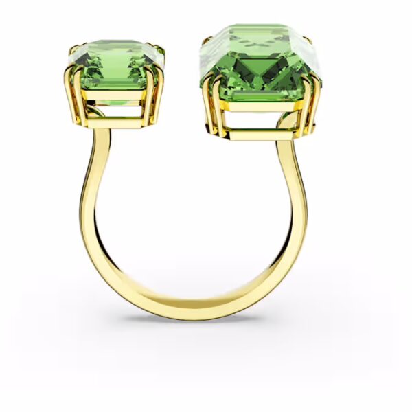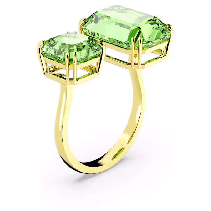 Это выдающееся коктейльное кольцо станет вашим новым фаворитом. С двумя восьмиугольными кристаллами в энергичном зеленом оттенке, оно дополнено позолоченной полосой для безупречного завершения. Носите его как отдельное украшение или в сочетании с другими кольцами из семейства Millenia для смелого образа. Это кольцо является частью семейства Millenia, разработанного креативным директором Джованной Энгельберт для Collection II.