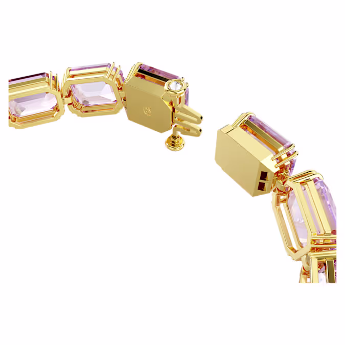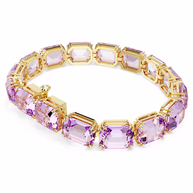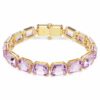 Излучая свет и яркий цвет, этот блестящий браслет Millenia привлекает внимание. Универсальный дизайн покрыт золотом и оживлен величественным украшением из восьмиугольных кристаллов фиолетового оттенка. Чистое выражение радости, которое можно легко сочетать с соответствующим чокером или ожерельем.