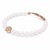 Этот очаровательный браслет, в каждой детали которого заключена красота, непременно станет вашим любимым украшением. На запястье он украшен нитью жемчужин Swarovski с одной бусиной из 18-каратного розового золота и элегантным пером, инкрустированным розовыми кристаллами Swarovski. Подчеркните красоту этого изящного украшения, дополнив его соответствующими серьгами.