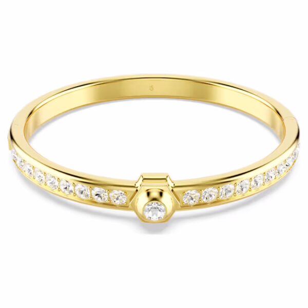 Этот браслет Numina обеспечивает ослепительный стиль с индустриальным краем. Прекрасно спроектированное изделие выполнено с золотым покрытием и имеет украшение из прозрачных круглых кристаллов и пленительную центральную шпильку. Носите его, чтобы придать своему образу смелый и современный вид.