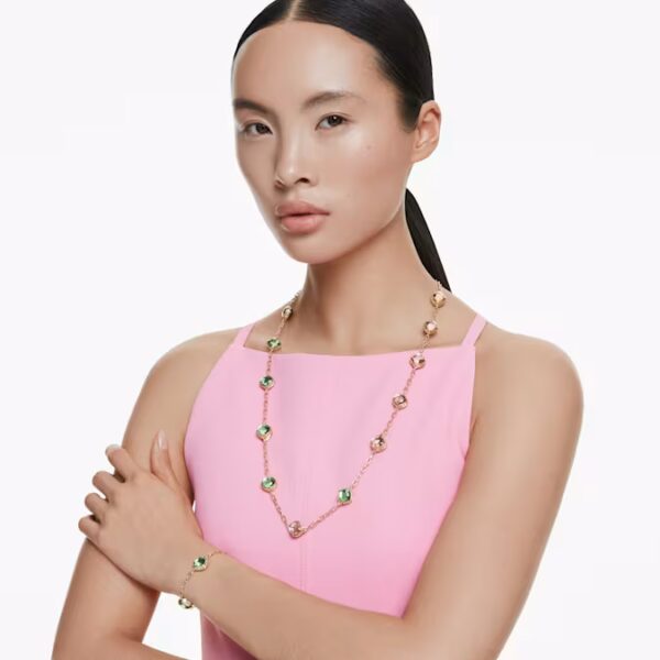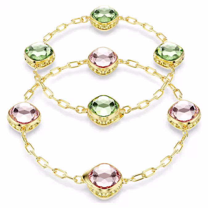 С этим ярким ожерельем Chroma Twist у вас будет несколько украшений в одном. Это позолоченное ожерелье украшено зелеными кристаллами Swarovski ReCreated™ с одной стороны и ярко-розовыми кристаллами с другой. Просто поверните его в соответствии со своим настроением или нарядом. С помощью магнитных застежек вы можете создать длинное ожерелье, колье или ожерелье или же создать пять разных браслетов разной длины. Благодаря такой универсальности возможности для самовыражения безграничны. Украшения Chroma Twist содержат не менее 50% кристаллов Swarovski ReCreated™ и являются нашей первой коллекцией, разработанной с учетом принципов экономики замкнутого цикла.