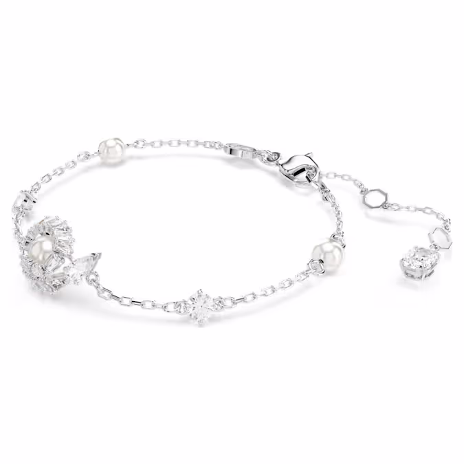 Как символ удачи на предстоящие месяцы, этот браслет Года Змеи сочетает в себе артистизм и свет. Вокруг запястья изящная цепочка с родиевым покрытием украшена чередующимися жемчужинами Swarovski Crystal Pearls и циркониями Swarovski Zirconia. В центре изображена извивающаяся змея, также выполненная из цирконов Swarovski различной огранки, с одной жемчужиной Swarovski Crystal Pearl, обвитой ее хвостом. Дизайн полностью регулируемый и станет завораживающим подарком в это праздничное время.