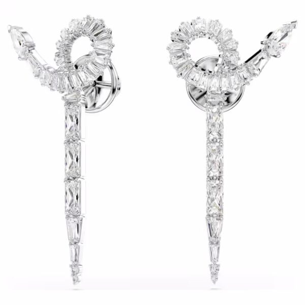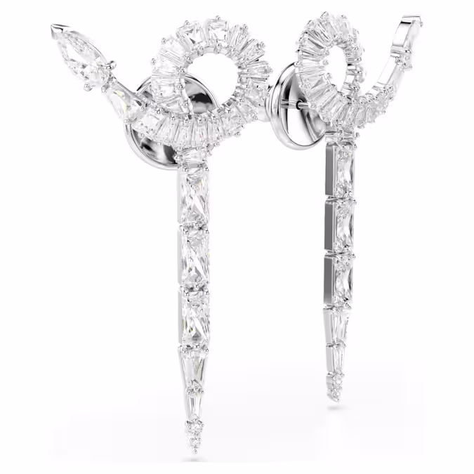Ощутите таинственность и жизненную силу змеи с помощью этих потрясающих сережек. Каждое изделие покрыто родием и украшено множеством прозрачных цирконий Swarovski разных форм. Низко висящие, а затем сворачивающиеся в энергичную форму, эти искусные серьги станут вдохновляющим подарком на Год Змеи и идеально символизируют уникальную красоту неизведанного.
