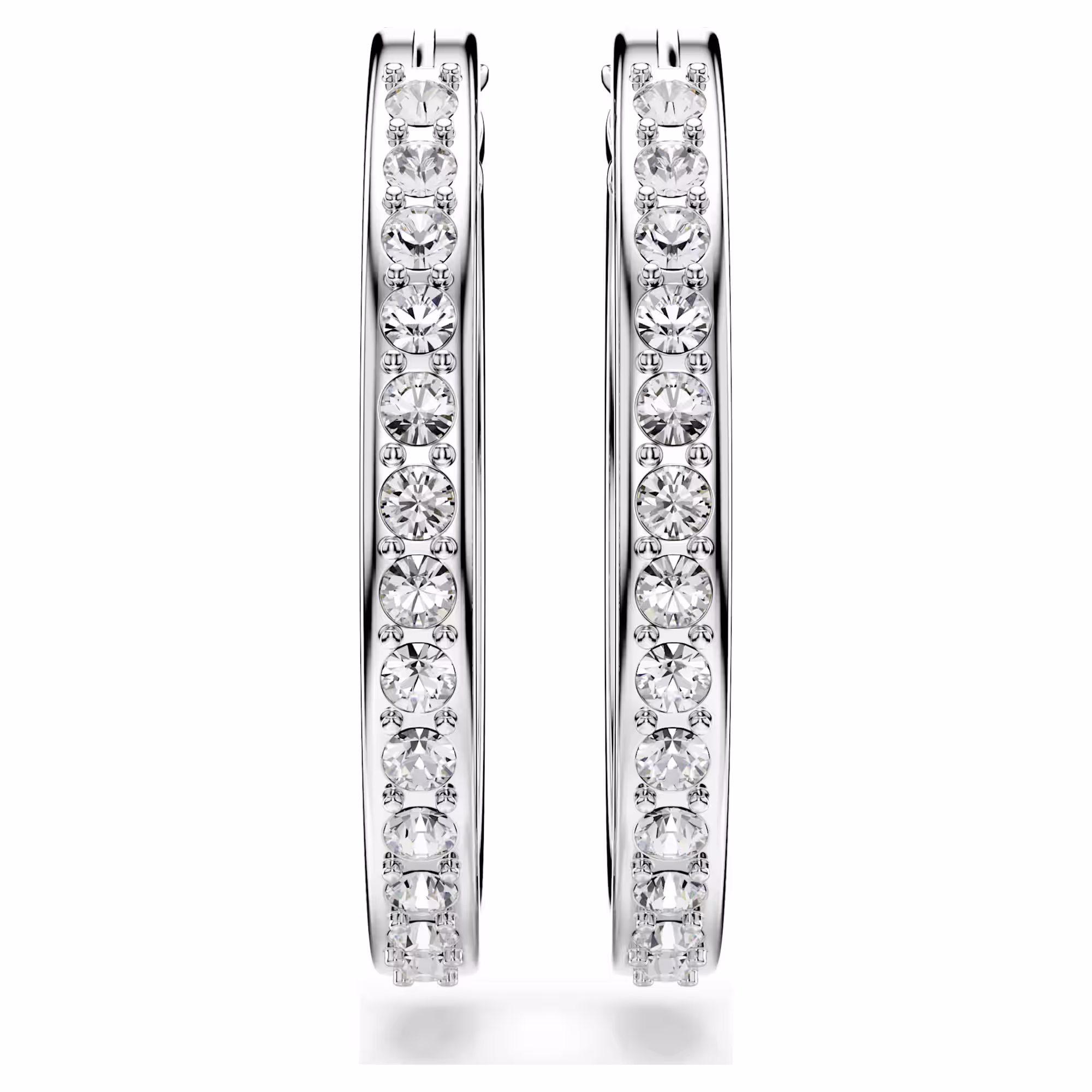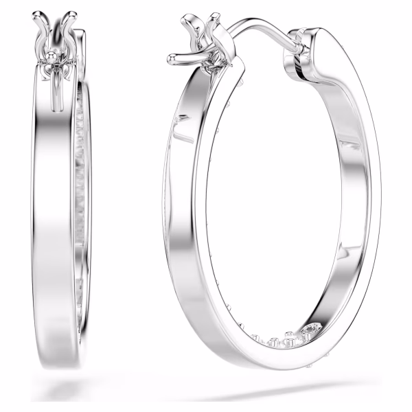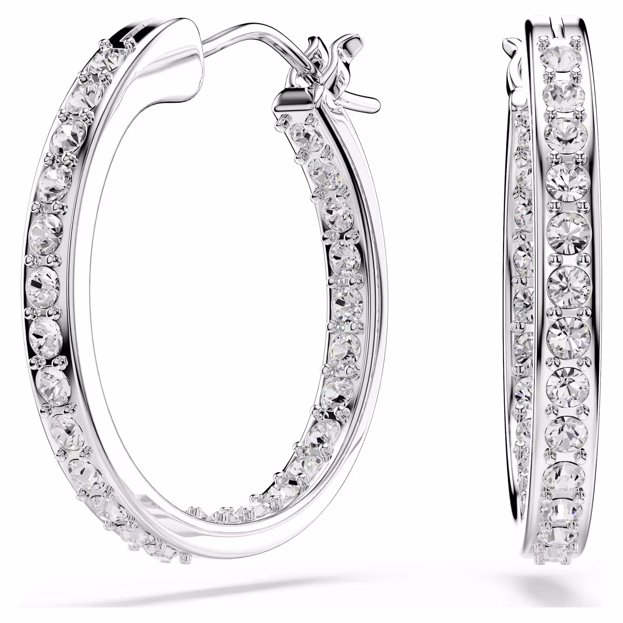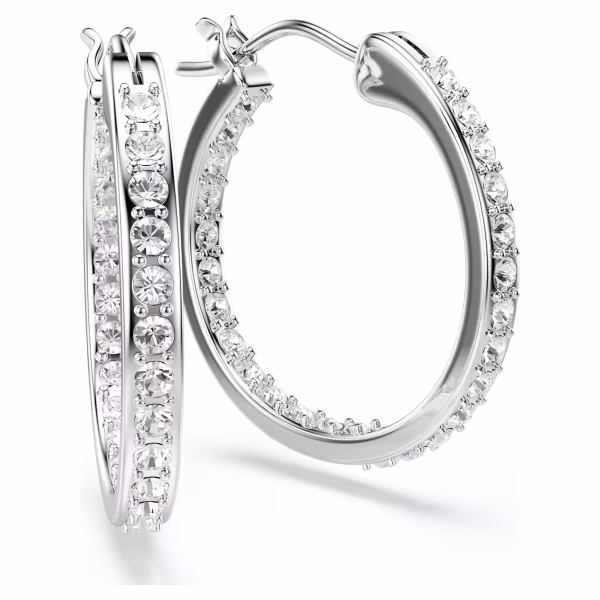 Эти классические серьги легко надеть по любому случаю. Внешний край каждого родированного кольца изящно украшен инкрустацией из прозрачных кристаллов, что придает этому вневременному дизайну мягкое мерцание.