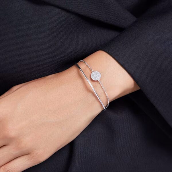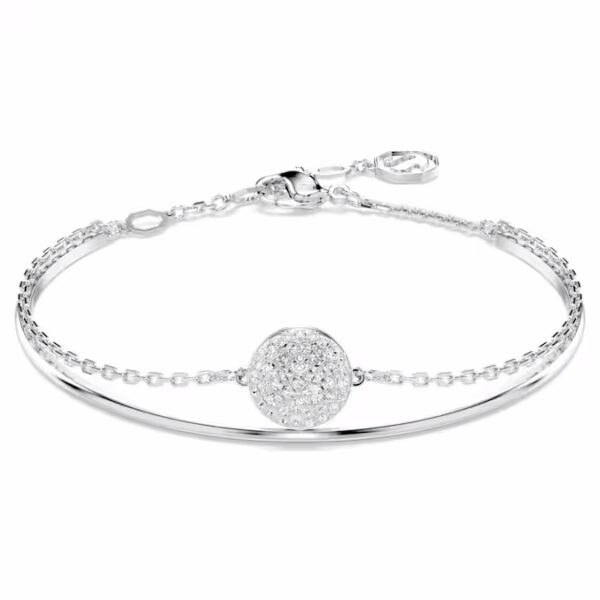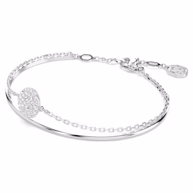 В честь космоса этот звездный браслет наполнен радостью, которая ловит свет. Вокруг запястья, дизайн с родиевым покрытием представляет собой жесткий браслет рядом с изящной цепочкой с куполообразным мотивом метеора. Он был красиво украшен снежным паве из прозрачных круглых кристаллов разных размеров. Сочетайте этот браслет с соответствующим кулоном, чтобы поднять любой наряд.
