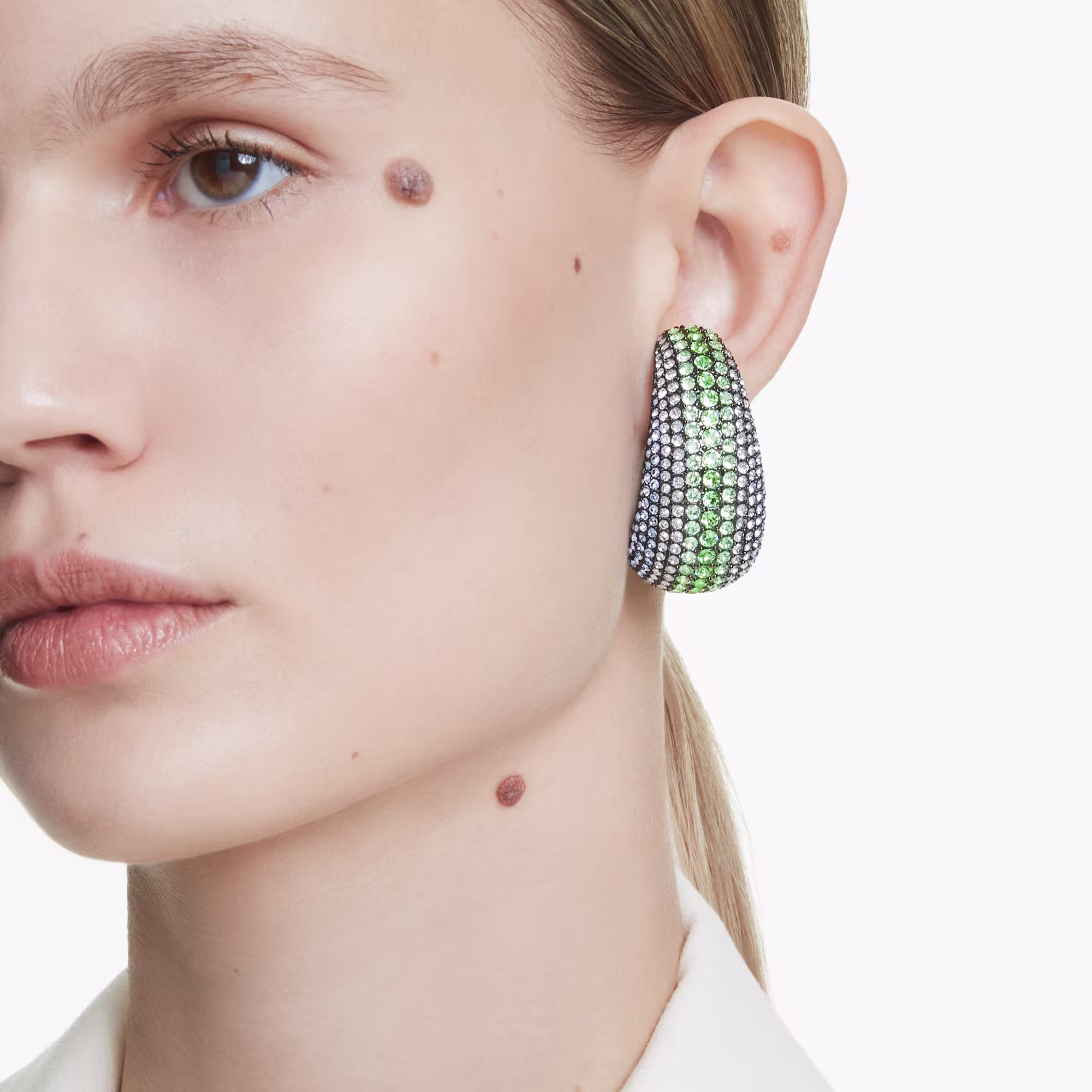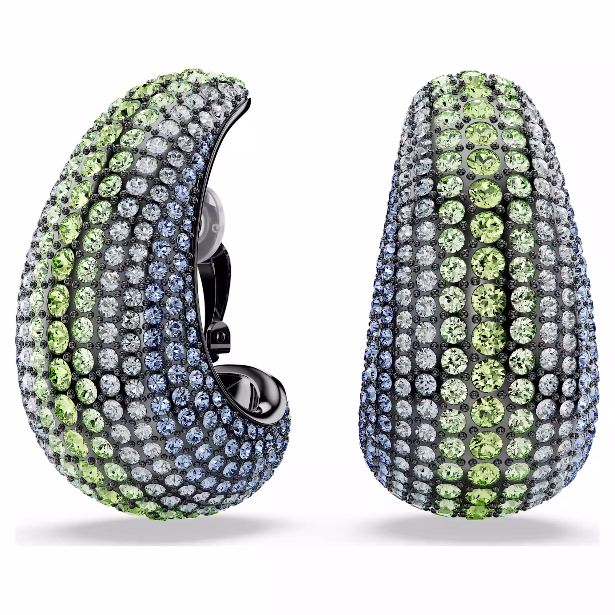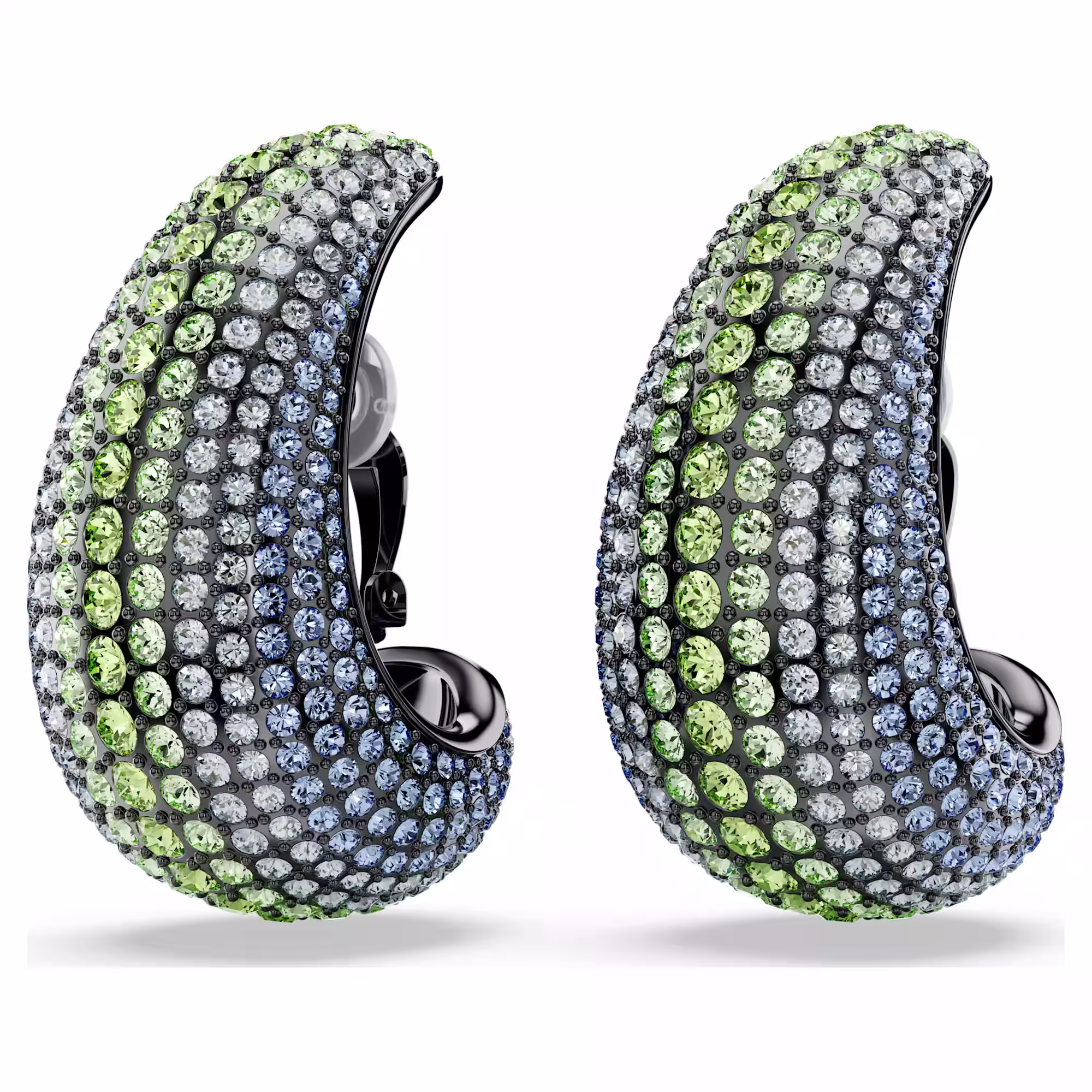 Подчеркните свой стиль цветами океана. Эти яркие клипсовые серьги из коллекции Sublima покрыты рутением и украшены паве из кристаллов зеленых и синих оттенков. Каждая металлическая основа имеет выпуклую форму для объема, а узор «Метеора», состоящий из кристаллов разного размера, завораживает своим сиянием. Носите их с похожими украшениями Sublima, чтобы излучать очарование.