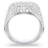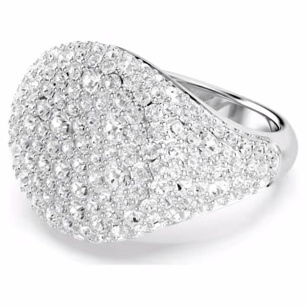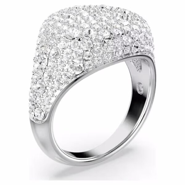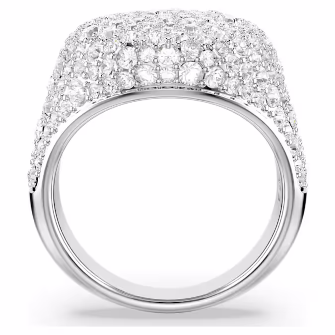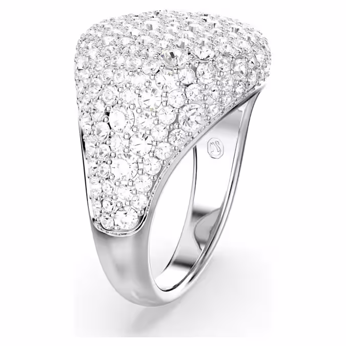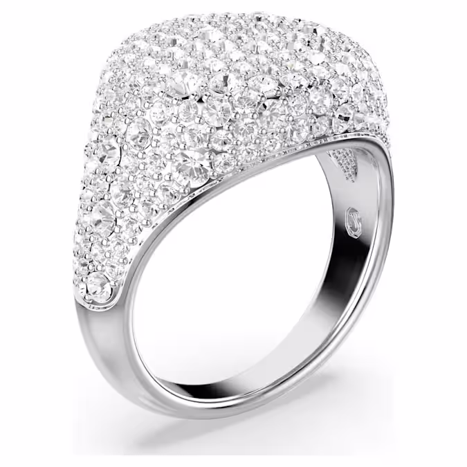 Это сверкающее кольцо с мотивом, с его созвездием кристаллов, осветит любой наряд. Покрытая родием полоса имеет смелый купол, украшенный снежным паве из прозрачных круглых кристаллов разных размеров. Эффект кластера гипнотический и яркий, придавая вам кольцо с завораживающим стилем.
