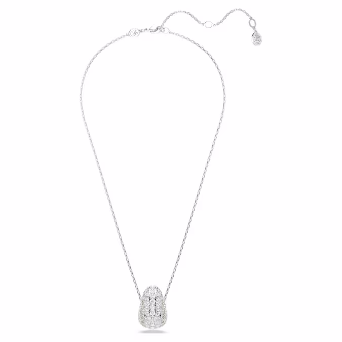 Изысканный пример мастерства Swarovski, эта подвеска Sublima станет мощным центральным элементом любого наряда. Подвешенный на элегантной цепочке, мотив с родиевым покрытием имеет куполообразное металлическое основание для дополнительного объема, покрытое паве из прозрачных кристаллов. Узор Meteora, состоящий из кристаллов разного размера, ослепляет завораживающим эффектом. Носите с похожими изделиями Sublima, чтобы создавать волны.