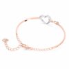 Символ бесконечной любви: этот элегантный браслет Swarovski демонстрирует символы любви и вечности, переплетенные друг с другом. Украшенный белыми кристаллами Swarovski, мотив сердца идеально дополняет символ бесконечности для по-настоящему романтического образа. Смешанная металлическая отделка идеально уравновешивает теплые и холодные тона, завершая дизайн. Это прекрасный подарок — и обещание — для особенного человека.