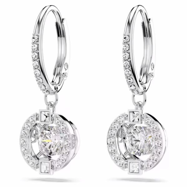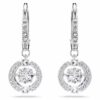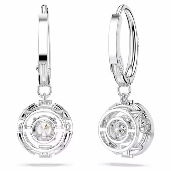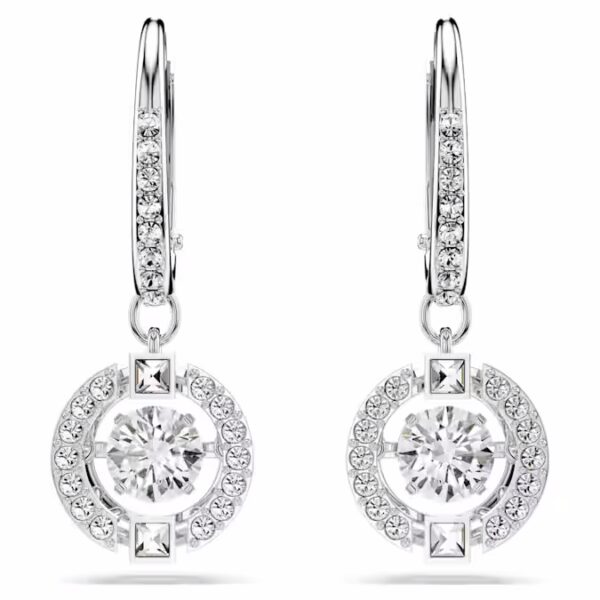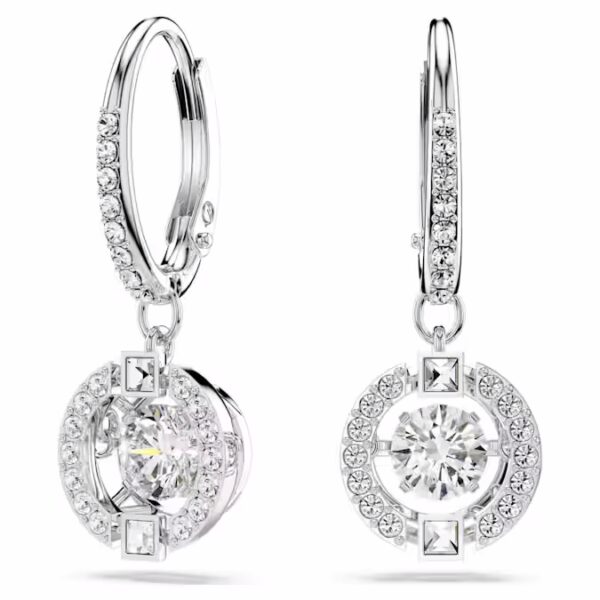 Эта красивая пара сережек с новой концепцией дизайна «танцующий кристалл» демонстрирует сверкающий камень внутри круглой металлической клетки в кристальном паве. Дизайн с родиевым покрытием одновременно изысканный и игривый, и является важным дополнением к любой шкатулке для драгоценностей.