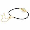 Этот браслет Symbolica излучает позитивную энергию. Надетое на черный шнурок с раздвижной застежкой, это золотое украшение является изысканной демонстрацией креативности Swarovski. Мотив сглаза выполнен из граненого внешнего кольца, черного паве и центрального камня синего цвета. Изделие, наполненное светом, одновременно значимое и завораживающее.