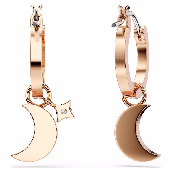 Зачем ограничиваться одним стилем сережек, когда эта универсальная пара предлагает множество вариантов ношения? Классические прозрачные кольца с паве, покрытые розовым золотом, можно носить как самостоятельно, так и с подвесками в виде луны и звезд черного и прозрачного паве для более экстравагантного образа. Но не ограничивайтесь только этим стилем, почему бы не подчеркнуть асимметричный дизайн, выбрав разные серьги для каждого уха? Роскошное завершение любого образа.