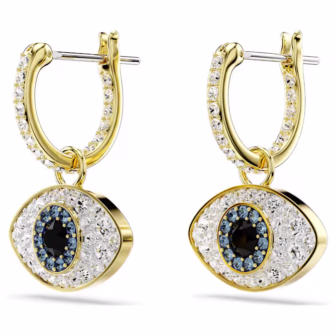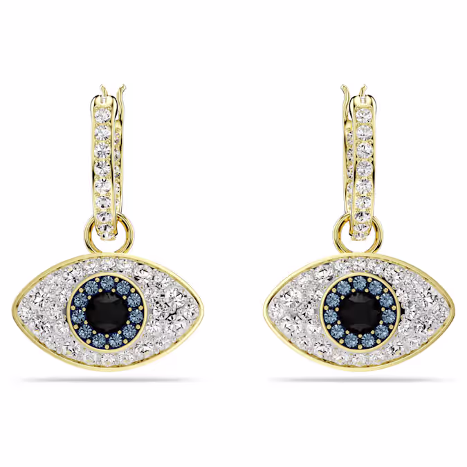 Настройтесь на свою духовную сторону с этими серьгами Symbolica. Подвешенные на классических кольцах с паве, куполообразные мотивы сглаза украшены прозрачным, синим и черным паве. Играя с традиционным символом талисмана, эти серьги придадут любому наряду оттенок мистического гламура.