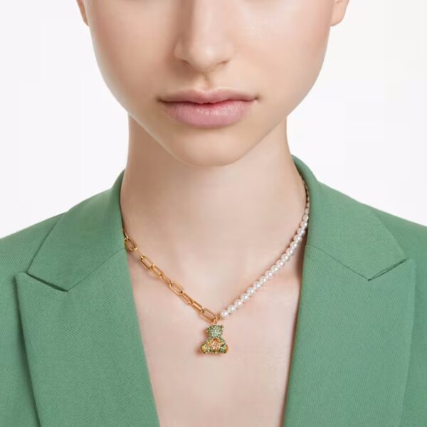 Вызовите улыбку с помощью этой игривой подвески в виде плюшевого мишки. Согревающий душу дизайн носится на ожерелье из кристальных жемчужин Swarovski и позолоченной цепи с мотивом плюшевого мишки, украшенным зелеными кристаллами. В центре плюшевый мишка держит желтый танцующий камень Swarovski Zirconia, который обеспечивает постоянное движение, отражающее свет. Носите его с соответствующим браслетом, чтобы завершить комплект.