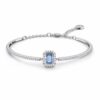 Этот элегантный браслет отражает желание Daniel Swarovski сделать изысканные ювелирные изделия доступными для каждой женщины. Здесь яркий синий восьмиугольный ограненный камень обрамлен изящными кристаллами и гладким родиевым покрытием с застежкой-карабином. Это идеальный выбор для придания изысканности повседневным джинсам или элегантному офисному стилю — подойдет все. Этот браслет является частью семейства Una, разработанного креативным директором Джованной Энгельберт для Collection II.
