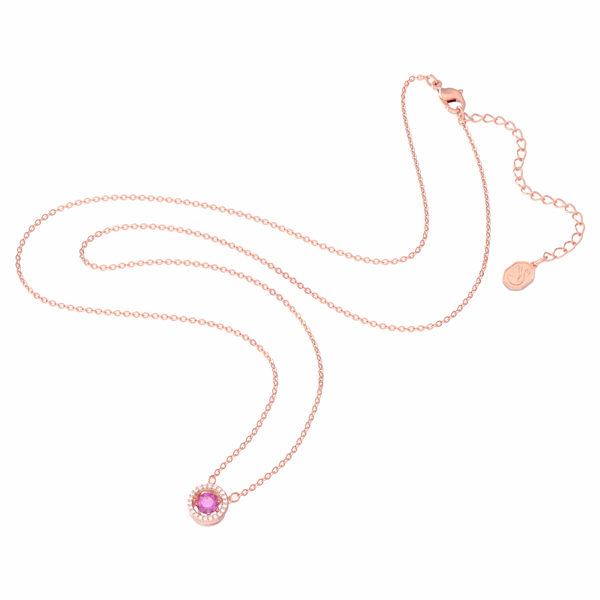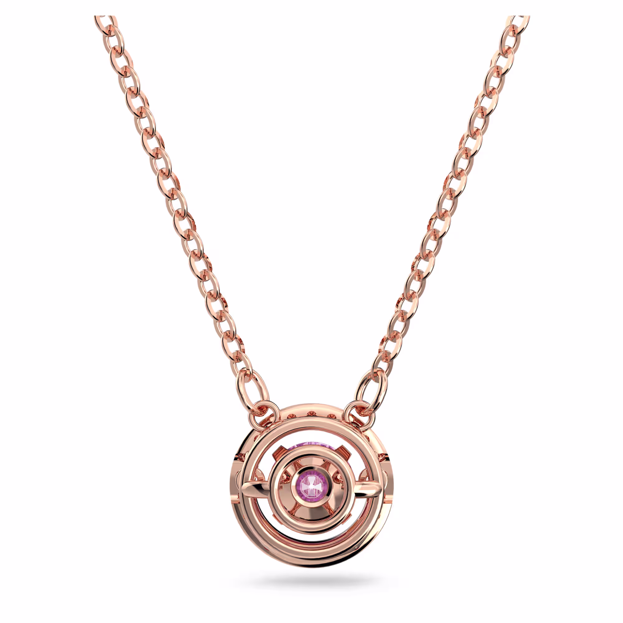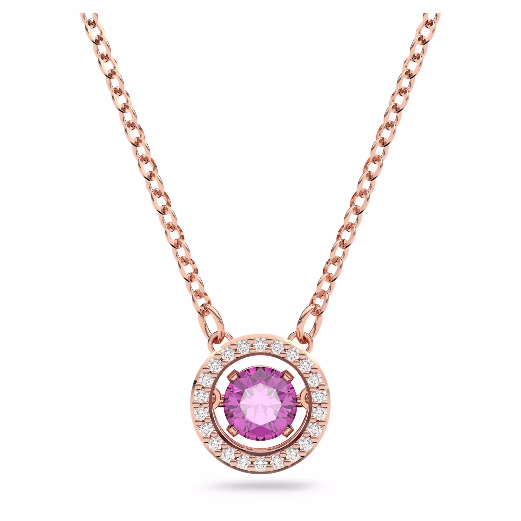 Добавьте изысканности в свою коллекцию с помощью этого элегантного кулона. Мастерски выполненный, он сочетает в себе круглый фиолетовый центральный элемент с прозрачным паве и сверкающую цепочку. Прекрасный подарок, который добавит цвета и утонченности любому образу.