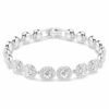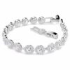 Окутайте свое запястье светом с этим светящимся браслетом Una Tennis. Покрытый родием дизайн отличается отдельными звеньями, каждое из которых оснащено блестящим центральным кристаллом и ореолом из более мелких кристаллов круглой огранки. Эфирно-элегантный выбор, который можно сочетать с подходящими изделиями из того же семейства.