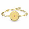 Этот звездный браслет — прекрасный способ соединиться со вселенной и отпраздновать знак зодиака Рак. Покрытая золотом монета находится на браслете-цепочке, разработанном специально для этой семьи. На одной стороне монеты созвездие Рака выделено кристаллами на блестящем фоне и окружено кругом мерцающего паве, в то время как на другой стороне выгравировано «Рак» на фоне с эффектом песка и один розовый камень в центре, окруженный кругом мерцающего паве. Сложные детали этого изделия вызывают мистическое и волшебное чувство. Это будет значимым подарком для вас или любимого человека.