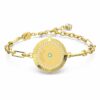 Этот звездный браслет — прекрасный способ соединиться со вселенной и отпраздновать знак зодиака Рыбы. Покрытая золотом монета находится на браслете-цепочке, разработанном специально для этой семьи. На одной стороне монеты созвездие Рыб выделено кристаллами на блестящем фоне и окружено кругом мерцающего паве, в то время как на другой стороне выгравировано «Рыбы» на фоне с эффектом песка и один синий камень в центре, окруженный кругом мерцающего паве. Сложные детали этого изделия вызывают мистическое и магическое чувство. Это будет значимым подарком для вас или любимого человека.